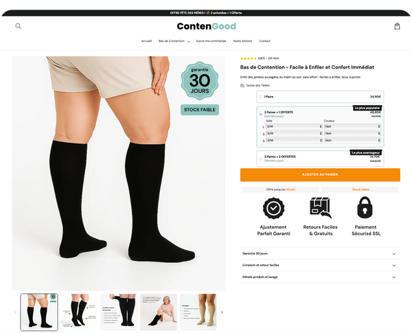 Vous recevez une boutique clé en main : design professionnel, page d’accueil, produit gagnant déjà intégré, descriptions, visuels, branding, mentions légales, politique de retour et configuration de base Shopify.