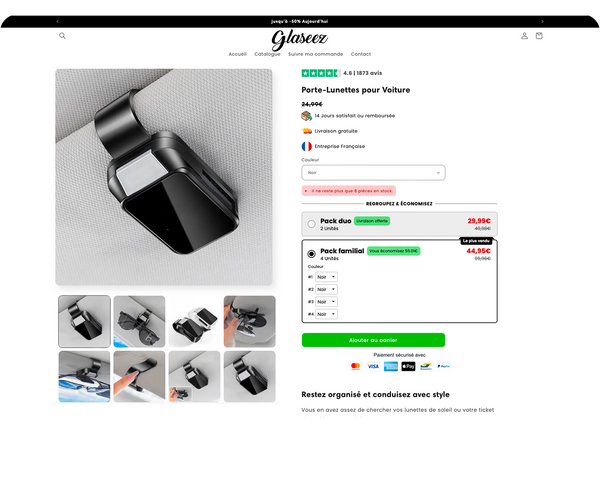 Une boutique unique, moderne et fluide, adaptée à ta cible.